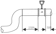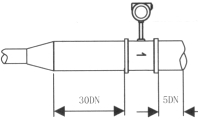 1.渦街流量?jī)x表對(duì)安裝點(diǎn)的上下游直管段有一定要求,否則會(huì)影響介質(zhì)在管道中的流場(chǎng),影響儀表的測(cè)量精度。儀表的上下游直管段長(zhǎng)度要求見圖3