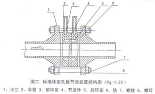 屬標(biāo)準(zhǔn)孔板。取壓方式為管道取壓。上游取壓孔中心位于孔板前面一倍管道內(nèi)徑處。下游取壓孔中心位于距離孔板后端為管道內(nèi)徑一半的地方。