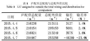 1)孔板裝反引起測量誤差。在孔板閥中安裝孔板時,應(yīng)保證孔板的安裝方向正確,天然氣從孔板的上端面流向下端面。表3為廬配供總配氣量與總配外供氣量的對比,正常情況下廬配供總配氣量應(yīng)大于總配外供氣量,如表2中4.4日至4.6日數(shù)據(jù)。4.6日廬配至總配線孔板裝反,導(dǎo)致4.7日廬配供總配氣量小于總配外供氣量,引起較大誤差。