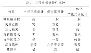 2流量計(jì)選型與分析 根據(jù)項(xiàng)目輸送蒸汽的性質(zhì)和工藝操作參數(shù),以及蒸汽計(jì)量廣泛選擇的流量計(jì)型號,初步確定可以選擇的流量計(jì)有畢托巴流量計(jì)、渦街流量計(jì)和一體化節(jié)流式流量計(jì),以下對三種流量計(jì)的原理及特點(diǎn)做以分析比較。 2.1畢托巴流量計(jì) 畢托巴流量計(jì)是采用皮托管原理提取管道中心流體流速(全壓-靜壓=動壓)再換算成流體體積流量與質(zhì)量流量的差壓式流量計(jì)。皮托管原理早就廣泛應(yīng)用在航天航空業(yè)中。 2.1.1組成和工作原理 畢托巴流量計(jì)將探針插入管道中心,總壓孔對正流體的來流方向,靜壓孔對正流體的去流方向,總壓與靜壓之差即為管道中心的實(shí)測差壓,再由該探針的風(fēng)洞標(biāo)定曲線擬合出該點(diǎn)的標(biāo)準(zhǔn)差壓,根據(jù)標(biāo)準(zhǔn)差壓來計(jì)算流體的流量。同時還需用壓力變送器測出流體壓力,用熱電阻溫度計(jì)測出流體溫度,把標(biāo)準(zhǔn)差壓信號、壓力信號、溫度信號同時引入單片機(jī)構(gòu)成的流量積算儀或直接接入DCS系統(tǒng),一方面對探針的流量方程進(jìn)行解算,再一方面對蒸汽進(jìn)行壓力、溫度補(bǔ)償,以保證測量精度,并用數(shù)字顯示出差壓、壓力、溫度、瞬時流量、累積流量、熱量、速度等參數(shù)。 2.1.2畢托巴流量計(jì)的優(yōu)點(diǎn) ①準(zhǔn)確度高。蒸汽測量最高可達(dá)0.5級; ②可靠性高。因探針的構(gòu)造非常簡單,結(jié)構(gòu)設(shè)計(jì)合理,導(dǎo)壓管內(nèi)介質(zhì)不流動,雜物不容易進(jìn)去,所以能長時間保持測量精度; ③測量范圍廣。流量在0.2~50000t/h都可以準(zhǔn)確測量。對低流速、小流量、大管徑測量效果、佳; ④安裝簡便。只需在管道合適的位置上打一個相當(dāng)?shù)目祝岩淮卧结槻迦牍艿乐行模纯煞奖愕剡M(jìn)行安裝; ⑤壓力損失小,一次元件傳感器是Φ20mm~Φ55mm不銹鋼制成,其截面積很小,在介質(zhì)管道中幾乎是無壓力損失,與孔板等節(jié)流裝置相比較具有明顯的節(jié)能效果;⑥現(xiàn)場安裝不要求直管段。 2.1.3畢托巴流量計(jì)的缺點(diǎn) ①價格高,性價比低;②引壓管沒有不積冷凝水設(shè)置和防凍設(shè)置。 2.2渦街流量計(jì) 2.2.1組成和工作原理 渦街流量計(jì)屬于體積流量計(jì)。渦街流量計(jì)是應(yīng)用流體振蕩原理來測量流量的,流體在管道中經(jīng)過旋渦發(fā)生體后會產(chǎn)生正比于流速的旋渦,由此可算出流體的流量。流量與旋渦頻率的關(guān)系,可用下式表示[1]:V=f/k 式中:f為旋渦的個數(shù);k為儀表系數(shù);V為流過流體的體積。 2.2.2渦街流量計(jì)用于蒸汽計(jì)量的主要優(yōu)點(diǎn) ①結(jié)構(gòu)簡單而牢固無可動部件,可靠性高,長期運(yùn)行十分可靠; ②安裝簡單,維修十分方便; ③輸出是與流量成正比的脈沖信號,無零點(diǎn)漂移,精度高; ④壓力損失較小,運(yùn)行費(fèi)用低,節(jié)能; ⑤測量范圍寬,量程比可達(dá)1∶10; ⑥應(yīng)用范圍廣,蒸汽、氣體、液體的流量均可測量。 2.2.3渦街流量計(jì)用于蒸汽計(jì)量的缺點(diǎn) ①要求被測量介質(zhì)的流動雷諾數(shù)下限較高,體流速一般應(yīng)大于4m/s,流速過低時會造成測量精度降低甚至小流量不計(jì)量;②對振動較敏感,在強(qiáng)烈振動的環(huán)境下工作,會影響測量精度;③對被測量介質(zhì)的潔凈度要求較高,不適宜測量對頻率信號檢測器造成嚴(yán)重污染的臟污流體。 2.3一體化節(jié)流式流量計(jì) 2.3.1一體化節(jié)流式流量計(jì)結(jié)構(gòu)和工作原理 一體化節(jié)流式流量計(jì)結(jié)構(gòu),如圖1所示。 一體化節(jié)流式流量計(jì)是將節(jié)流裝置和差壓變送器做成一體,由差壓變送器輸出4~20mA差壓信號,可測量多種介質(zhì)(液體、氣體、蒸汽),設(shè)計(jì)了防凍式隔離器,簡化了流量計(jì)結(jié)構(gòu),便于安裝。一體化節(jié)流式流量計(jì)可采用多種節(jié)流件,常用ISA1932標(biāo)準(zhǔn)噴嘴及標(biāo)準(zhǔn)孔板。 配置智能化差壓變送器和帶通訊功能的流量顯示設(shè)備的一體化節(jié)流式流量計(jì),可通過HART協(xié)議實(shí)現(xiàn)寬量程比檢測,流量測量范圍度可達(dá)到6∶1~10∶1或更寬。充滿管道的流體流經(jīng)管道內(nèi)的節(jié)流裝置,流束將在節(jié)流件處形成局部收縮,從而使流速增加,靜壓力降低,在節(jié)流件前后產(chǎn)生了靜壓力差(或差壓)。流體的流速愈大,在節(jié)流件前后產(chǎn)生的差壓也愈大。因此通過測量差壓的方法可測量流量[2]。 2.3.2一體化節(jié)流式流量計(jì)用于蒸汽計(jì)量的優(yōu)點(diǎn) ①測量范圍寬約為10∶1;②優(yōu)先選定值ISO1932噴嘴,壓損小(同流量,同β值情況下,為孔板的60%),檢定周期長(是孔板的4倍);③引壓管不積存冷凝水;④采用專利技術(shù)———防凍隔離器,不需伴熱、保溫和隔離器,節(jié)約能源;⑤介質(zhì)適用性強(qiáng)(特別適用于蒸汽流量測量),動態(tài)性能好,結(jié)構(gòu)簡單,故障率低,安裝維護(hù)簡便。 2.3.3一體化節(jié)流式流量計(jì)用于蒸汽計(jì)量的缺點(diǎn) ①上下游直管段應(yīng)是圓形,內(nèi)壁光滑,其內(nèi)徑與流量計(jì)標(biāo)稱內(nèi)徑相同;②一體化節(jié)流式流量計(jì)必須垂直安裝在與其公稱通徑相應(yīng)的水平