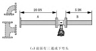 渦街流量計主要用于工業管道介質流體的流量測量,其特點是壓力損失小,量程范圍大,精度高,在測量流體工況體積流量時幾乎不受流體密度、壓力、溫度、黏度等參數的影響,可用來測量液體、氣體、蒸汽等多種介質,且維護量小、成本低廉,因此被廣泛應用于氯堿行業。 1渦街流量計的工作原理 渦街流量計是基于卡門渦街原理(karmanvor-texstreet)進行測量。當流體通過漩渦發生體時,發生體兩側會交替出現有規則的漩渦,這種旋渦稱為卡門渦街。而且兩側漩渦的旋轉方向相反(見圖1),每個漩渦將產生一個低壓區,傳感器監測壓力變化并轉換成脈沖信號。在流量計的允許量程范圍內,渦街的形成具有一定的規律。因此,渦街頻率與體積流量成比例關系。標定系數(K系數)為比例常數,也就是通常所說的儀表系數。K系數為流量計流量系數,其物理意義是每立方米流體的脈沖數。 在流量計的允許量程范圍內,K系數僅僅取決于流量計的幾何尺寸,與流體流速和物理特性(如黏度和密度)無關。因此,K系數與被測介質類型無關。 初始的測量信號(渦街頻率)已進行數字化處理,與流量成線性比例關系。流量計在出廠前通過標定確定K系數。 流量計的允許量程范圍主要取決于雷諾數(Re),Re是流體的慣性力和黏性力的比值,用于表征流體的流動特性。在采用渦街流量計進行測量時,當Re>4000后,儀表才會有顯示值;當Re>20000后,儀表的測量值才是線性的。Re的計算公式見式(1)。 式中:Qe為流體流量,m3/s;di為內徑,m;μ為流體動力黏度,Pa·s;ρ為流體密度,kg/m3。 2渦街流量計的特點 2.1優點 (1)安裝簡便,免維護(與差壓式流量計比較)。 (2)應用范圍廣,可以測量液體、氣體以及蒸汽(與電磁流量計比較)。 (3)測量液體、氣體或蒸汽時,儀表內置的溫度壓力傳感器直接補償,可得出質量流量、標況流量、熱量、比焓等值。 (4)成本低、壓損小(與科氏力質量流量計比較)。 (5)結構簡單牢固,無可動部件,使用壽命長。 (6)采用抗機械振動、抗沖擊和抗臟污的結構設計。 (7)更換傳感器后不需要重新標定。 2.2缺點 (1)量程比小于10∶1(質量流量計一般在25∶1,電磁流量計為100∶1)。 (2)管道振動對流量計影響較大。 (3)最小流量受Re影響。 (4)安裝要求高,對直管段以及墊圈同心度有較高的要求(質量流量計無直管段要求,電磁流量計要求其前面直管段長度為10DN,其后面直管段長度為5DN)。 3渦街流量計選型注意事項 渦街流量計按傳感器形式分為法蘭式、夾持式、插入式。選型時優先考慮法蘭式,其次是夾持式和插入式。原因是夾持式和插入式渦街流量計的精度受安裝影響較大,不規范的安裝將產生很大的測量誤差。 受Re的影響,測量液體時,一般情況下流量計口徑小于管道口徑一檔,測量氣體時縮徑在一檔到兩檔。要根據式(1)計算Re,具體要求是:最小流量時的Re>20000。如果擔心計算結果的準確率,可以委托渦街流量計生產廠家進行計算,廠家都有專業的計算軟件(如E+H公司的Applicator流量計算軟件),可根據用戶提出的要求(被測介質、流量范圍、溫度、壓力)計算出介質密度、黏度、聲速、流量范圍(精度范圍內)、壓損、流速、體積流量誤差、質量流量誤差、Re、渦街頻率、推薦的儀表口徑等參數。 變送器的選用方式有兩種:一體式和分體式,需根據現場使用條件和環境進行選型。在測量高溫介質或安裝在水井中的場合下,建議選用分體式儀表,以方便檢修、調試或改善變送器的工作環境。 在測量氣體或蒸汽時,渦街流量計的選型一定要考慮溫度和壓力補償問題[1]。因為氣體是可壓縮流體,當溫度和壓力變化時,其體積將隨之改變。所以測量氣體流量時均要求流量計輸出質量流量或標準體積流量,而渦街流量計是速度式流量計,只能測量工況下的體積流量,這樣就要求進行溫度和壓力補償,將工況體積流量轉換為質量流量或標況體積流量。測量一般氣體時,補償原理符合標準氣體狀態方程,方程式見式(2)。 一般氣體的溫度和壓力補償由上位機(DCS控制系統)通過其專用補償功能塊實現。 測量蒸汽時,不能使用標準氣體狀態方程,其一般有以下兩種補償方式可選用。 (1)有些廠家的渦街流量計傳感器內置溫度和壓力探頭,儀表根據所測溫度和壓力判斷蒸汽是飽和蒸汽還是過熱蒸汽,由儀表內部集成的蒸汽數據庫自動計算質量流量。當渦街流量計傳感器無內置溫度和壓力檢測元件時,只能在儀表內部做靜態補償(即輸入固定的溫度和壓力值用于補償)。此方法只適用于溫度和壓力變化不大的場所。 (2)采用蒸汽流量積算儀,將渦街流量計所測工況體積流量以及溫度和壓力變送器所測信號傳到蒸汽流量積算儀,通過蒸汽流量積算儀來完成溫壓補償。蒸汽流量積算儀內置過熱蒸汽以及飽和蒸汽所有數據,根據設計的流量測量單位可以輸出質量流量、標準體積流量甚至熱量和比焓等。 4渦街流量計的安裝要求 被測介質具有穩定流態是保證渦街流量計正確測量的前提條件,要使渦街流量計的測量值更穩定、正確安裝時需注意以下3點。 (1)務必確保傳感器銘牌上的箭頭指向與流體流向一致。 (2)渦街流量計對最小直管段的要求見圖2。當現場存在2個或過多干擾源時,建議遵循最長的直管段要求。圖2中的A表示前直管段,B表示后直管段,h表示管道擴徑時產生的高度差;DN為管道直徑。 當現場無法滿足直管段要求時,建議采用與渦街流量計配套的