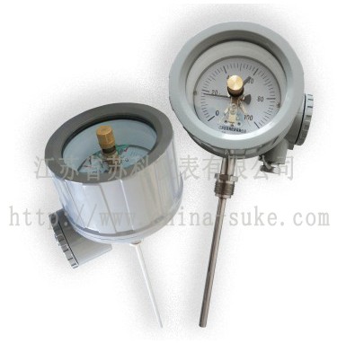 隔爆雙金屬溫度計可以直接測量生產現場存在碳化物等爆炸物各過程中的-80~+500℃范圍內液體、蒸汽和氣體介質以及固體表面測溫。